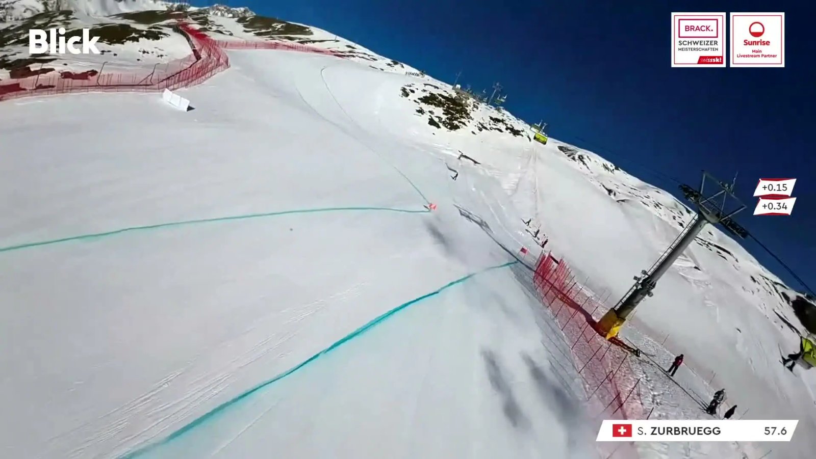 Nach einem Sturz von Sandro Zurbrügg bei den Ski-Schweizermeisterschaften in St. Moritz fährt Kevin Fritschi ungebremst weiter, während der Verunglückte noch im Netz liegt. Erst danach wird das Rennen unterbrochen.Publiziert: 09.04.2026 um 09:25 Uhr|Aktualisiert: 10.04.2026 um 09:53 Uhr Teilen Kommentieren