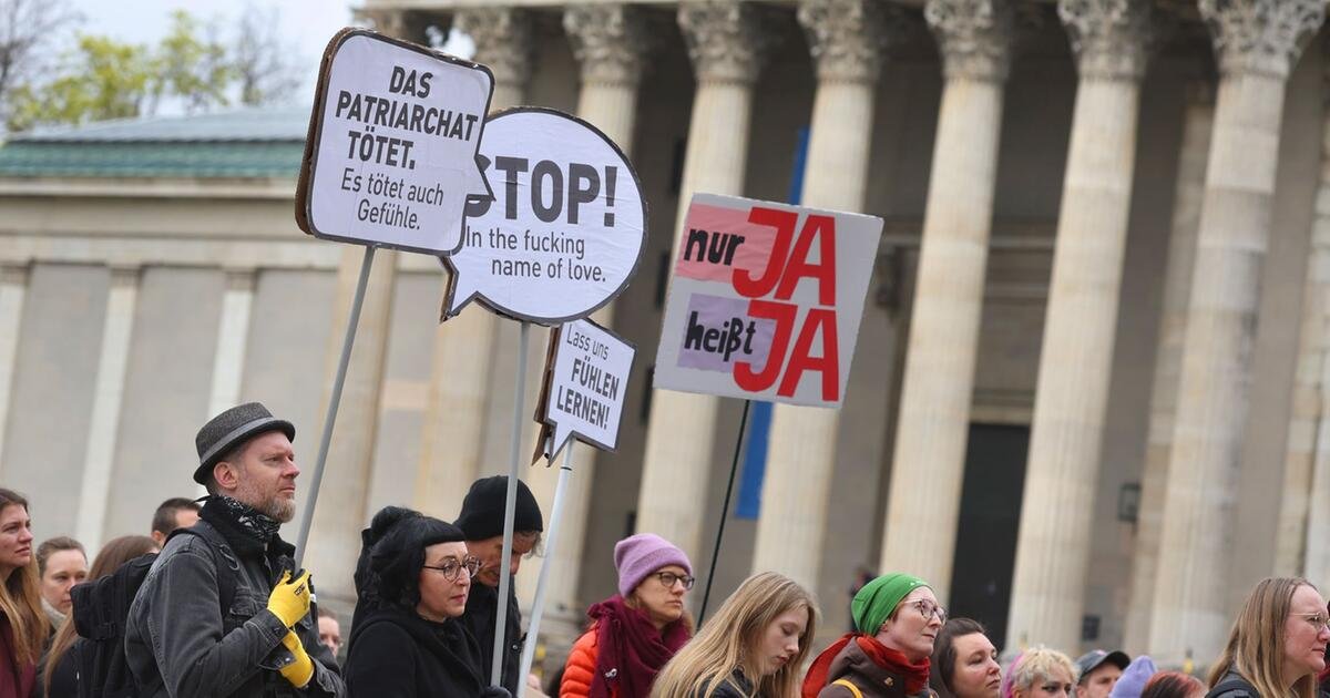 München Demonstration gegen sexualisierte Gewalt Aktualisiert am 12.04.2026, 17:09 Uhr Demonstranten protestieren gegen sexualisierte Gewalt. © dpa / Karl-Josef Hildenbrand/dpa Lesedauer:1 Min....